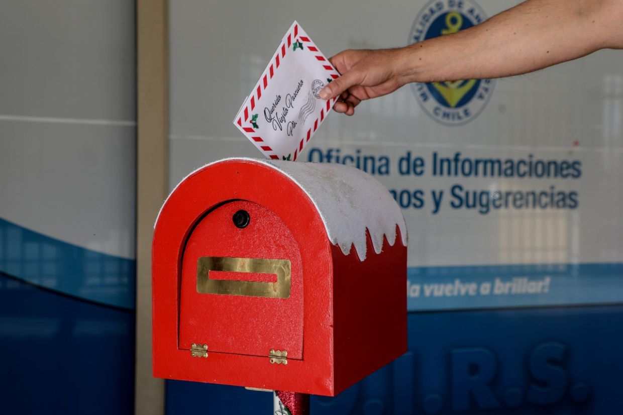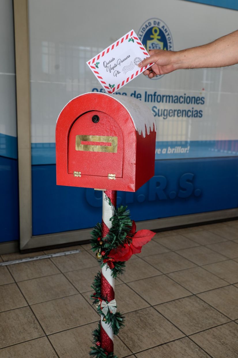Es así que a través de la Dirección de desarrollo comunitario (DIDECO), se invita a toda la comunidad a participar de nuestro tradicional "Concurso Buzón de los Deseos", donde 100 familias antofagastinas recibirán una giftcard de 100 mil pesos para que puedan disfrutar de una cena navideña inolvidable. Así lo dio a conocer la directora de desarrollo comunitario, Yantiel Calderón, quien invitó a la comunidad a ser partícipe de esta iniciativa, agregando que todas las familias interesadas deben depositar su carta, la cual debe contener los siguientes datos: nombre, número de integrantes, contacto telefónico y dirección. "Tenemos una muy buena noticia porque ya están habilitados los buzones fuera de la municipalidad y fuera del gimnasio Empalme que van a recibir las cartitas de todos los vecinos que sepan o conozcan de algún caso que quiera postular a una de las 100 giftcard de cien mil pesos que va a permitir tener una muy feliz navidad. Estas cartas van a ser revisadas por el personal de Dideco y vamos a estar esperando por ellas para llevar una muy bonita cena de navidad". | ¿Cómo participar? Es muy sencillo: escribe una carta y deposítala en uno de los buzones que estarán disponibles desde este viernes hasta el miércoles 18 de diciembre en la explanada de la municipalidad con tres buzones y un cuarto en el estadio techado Empalme.