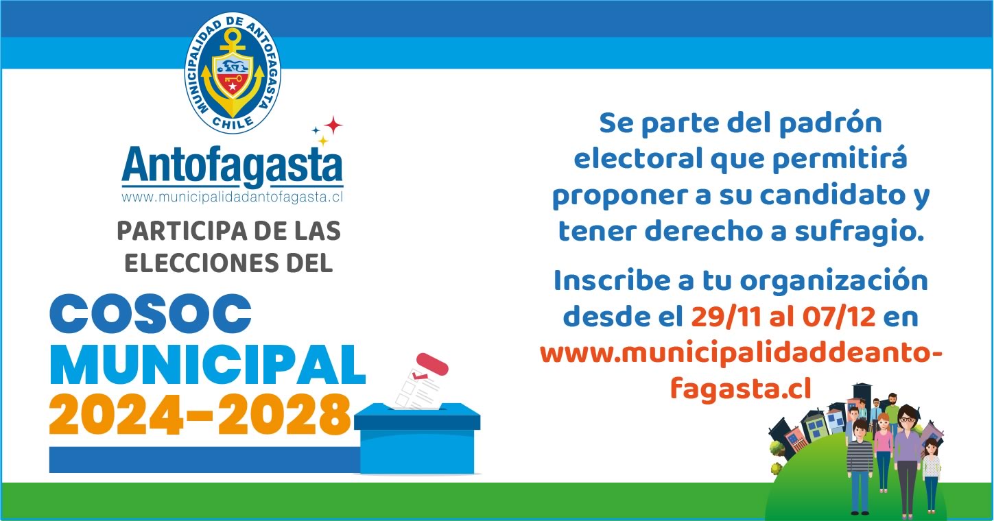 Las agrupaciones interesadas podrán acceder al formulario de inscripción a través de la página web de la Municipalidad de Antofagasta y/o en dependencias municipales.